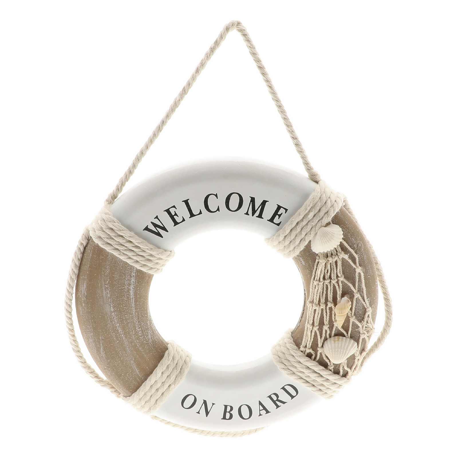 Verleihen Sie Ihren Wohn- oder Ladenflächen eine stilvolle, maritime Note mit unserem hochwertigen Deko Schwimmring aus Holz in Weiß und Braun. Mit einem Durchmesser von 23 cm ist dieser Holzring die perfekte Dekoration für alle, die das Meer lieben und nautisches Flair in ihre Räume bringen möchten.