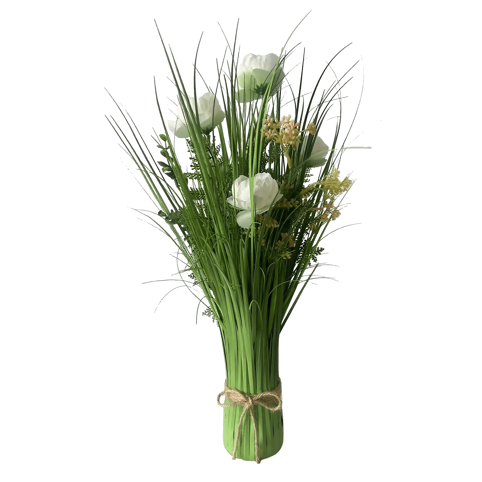 Bring fresh greenery into your home with our decorative grass bundles with white flowers.