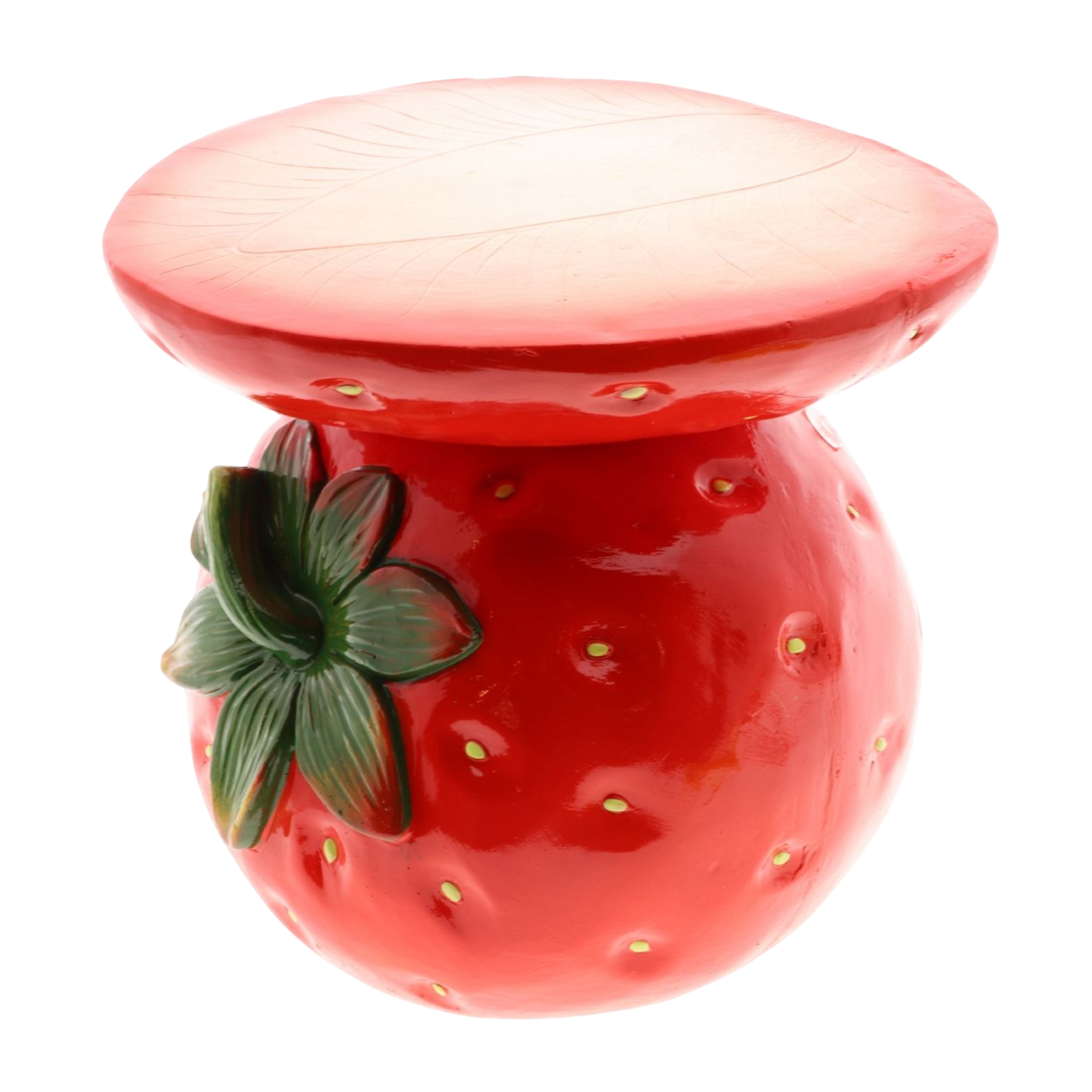 The strawberry side table in bright red is a real eye-catcher for your home or garden. Measuring 36 x 33 cm and made of sturdy magnesium, this small table combines functionality with a playful look. Particularly unique: the underside of the table is shaped like a whole strawberry, while the table top is shaped like half a strawberry - a creative design highlight.