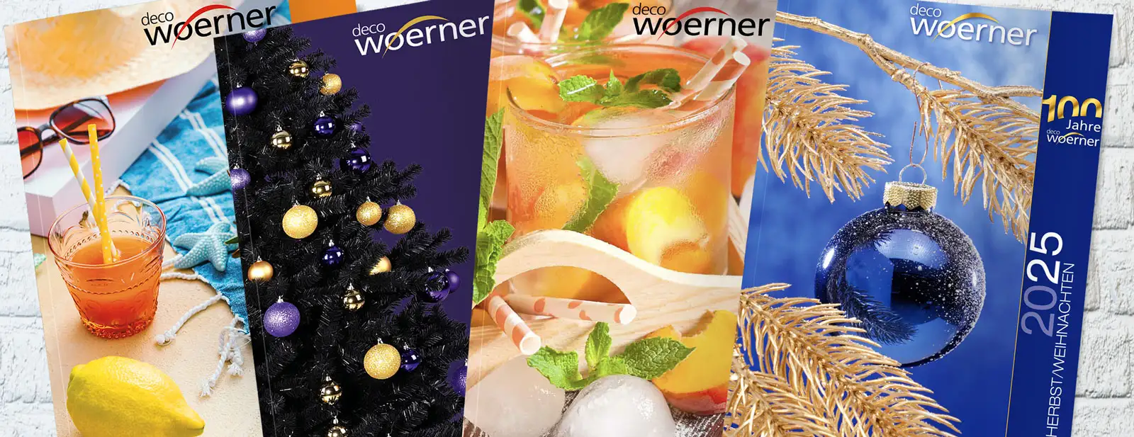 Descubra el mundo de catálogos que le ofrece Woerner. En cada catálogo general podrá encontrar más de 200 páginas con los temas más actuales, ideas y productos de decoración, al igual que una gran gama de productos para la promoción de sus ventas. Solicite un catálogo y hojeé con calma él mismo. Naturalmente Usted encontrará todos nuestros productos aquí, en nuestra tienda online, DecoWoerner.