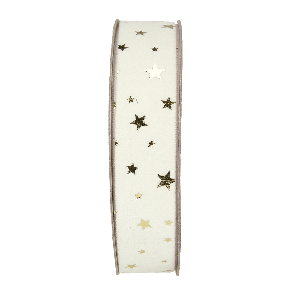 Cinta de terciopelo con estrellas doradas 25 mm / 15 m