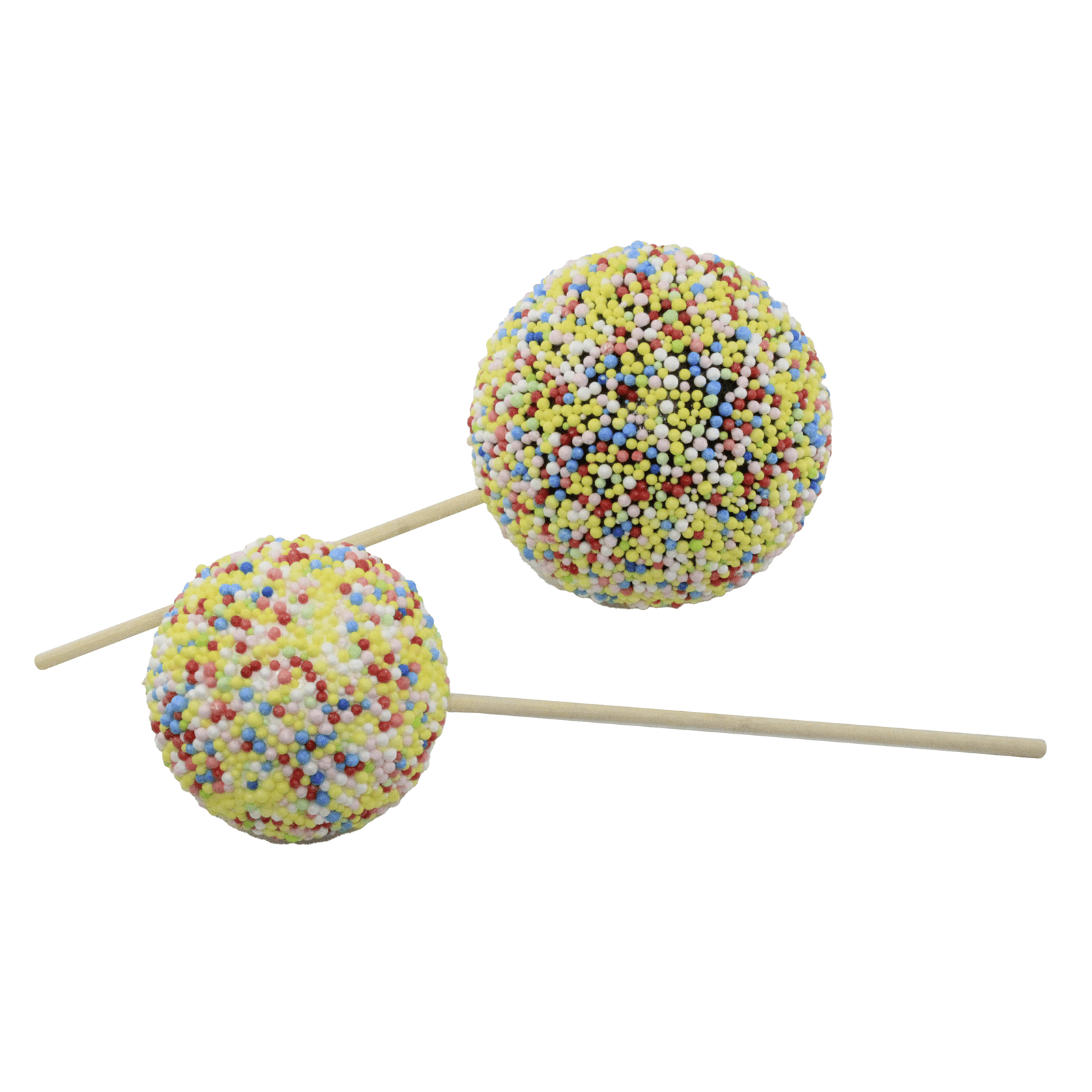 El acabado de alta calidad, la superficie blanca y lisa y las grajeas de colores dan a este cake pop XXL un aspecto aparentemente realista. Su gran tamaño garantiza la máxima atención: perfecto para complementar mundos temáticos o realzar escaparates de forma atractiva.
