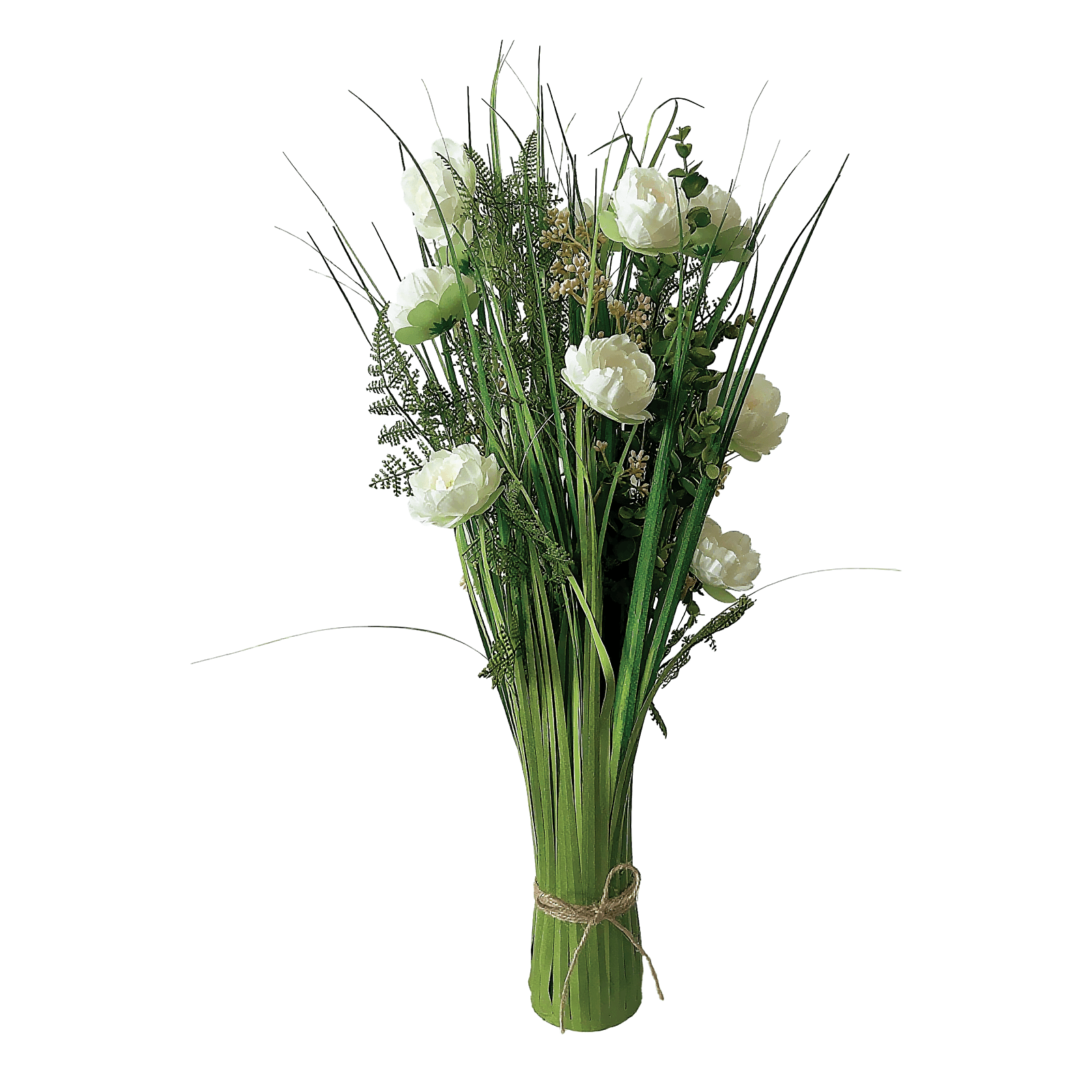 Lleva el verdor fresco a tu hogar con nuestros manojos decorativos de césped con flores blancas.