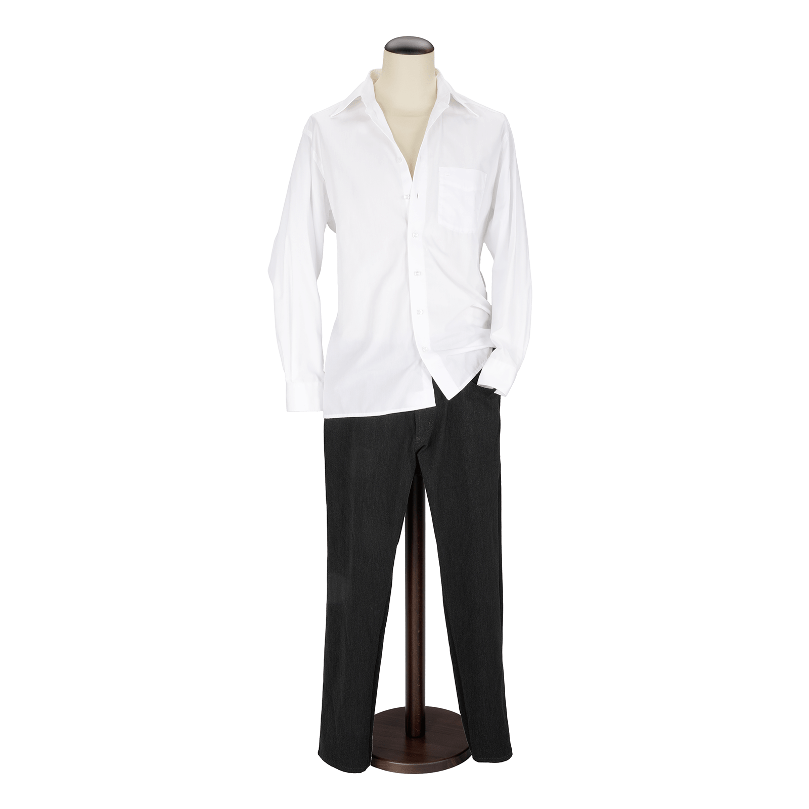 Apportez une touche d'élégance à votre atelier de couture et de design avec notre buste masculin en écru/noyer noble.