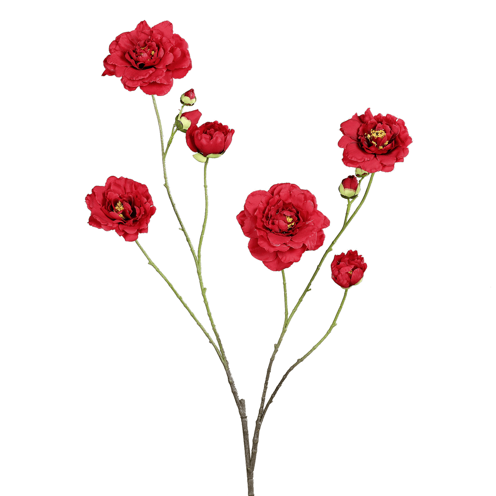 La couleur rouge profond, le feuillage réaliste et les fleurs détaillées font de cette branche de camélia un élément décoratif exclusif – idéal pour les grands vases, les compositions florales ou les décorations saisonnières.