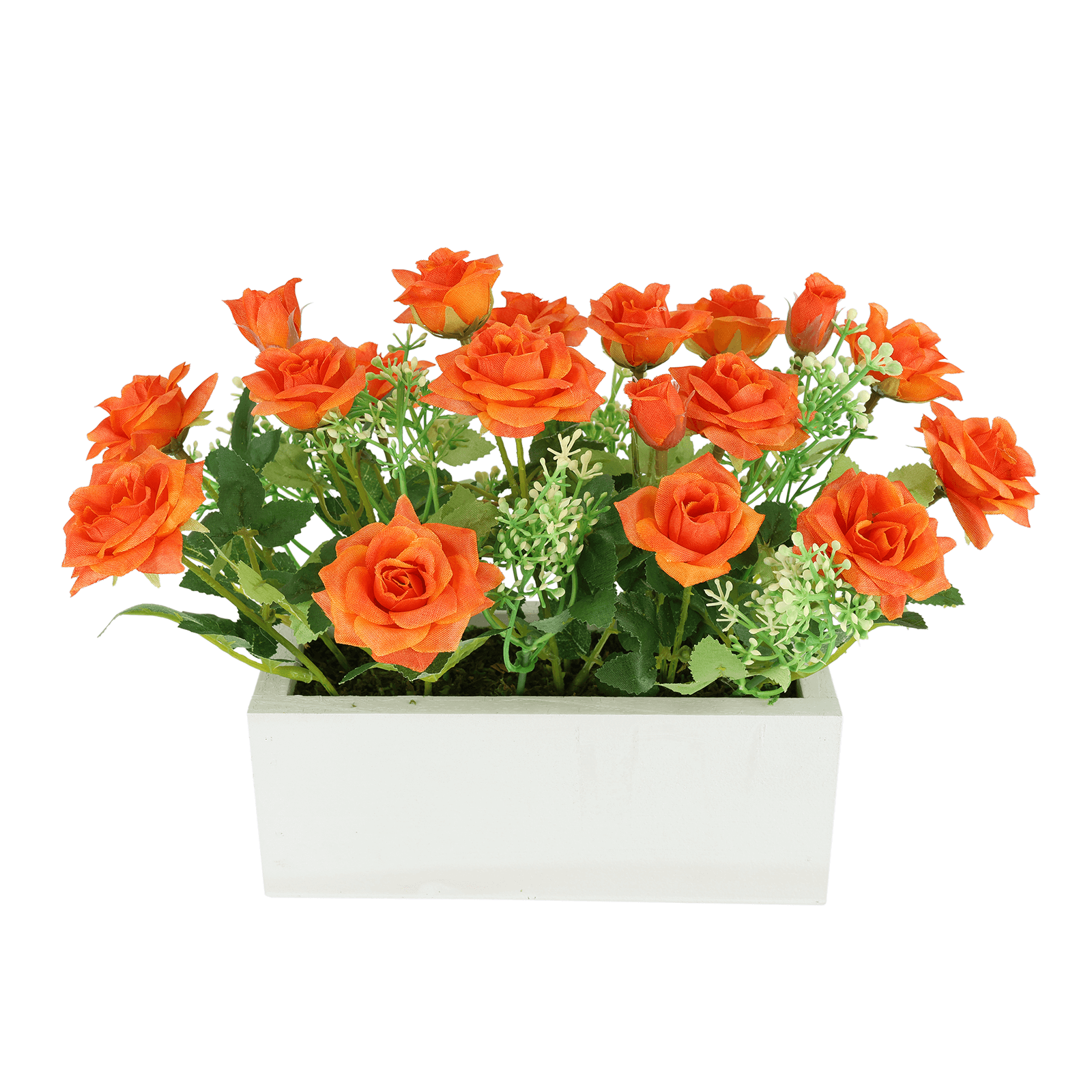 Künstlicher Rosenbusch im Holzkasten orange 26 x 20 cm – natürliche Schönheit ohne Pflegeaufwand