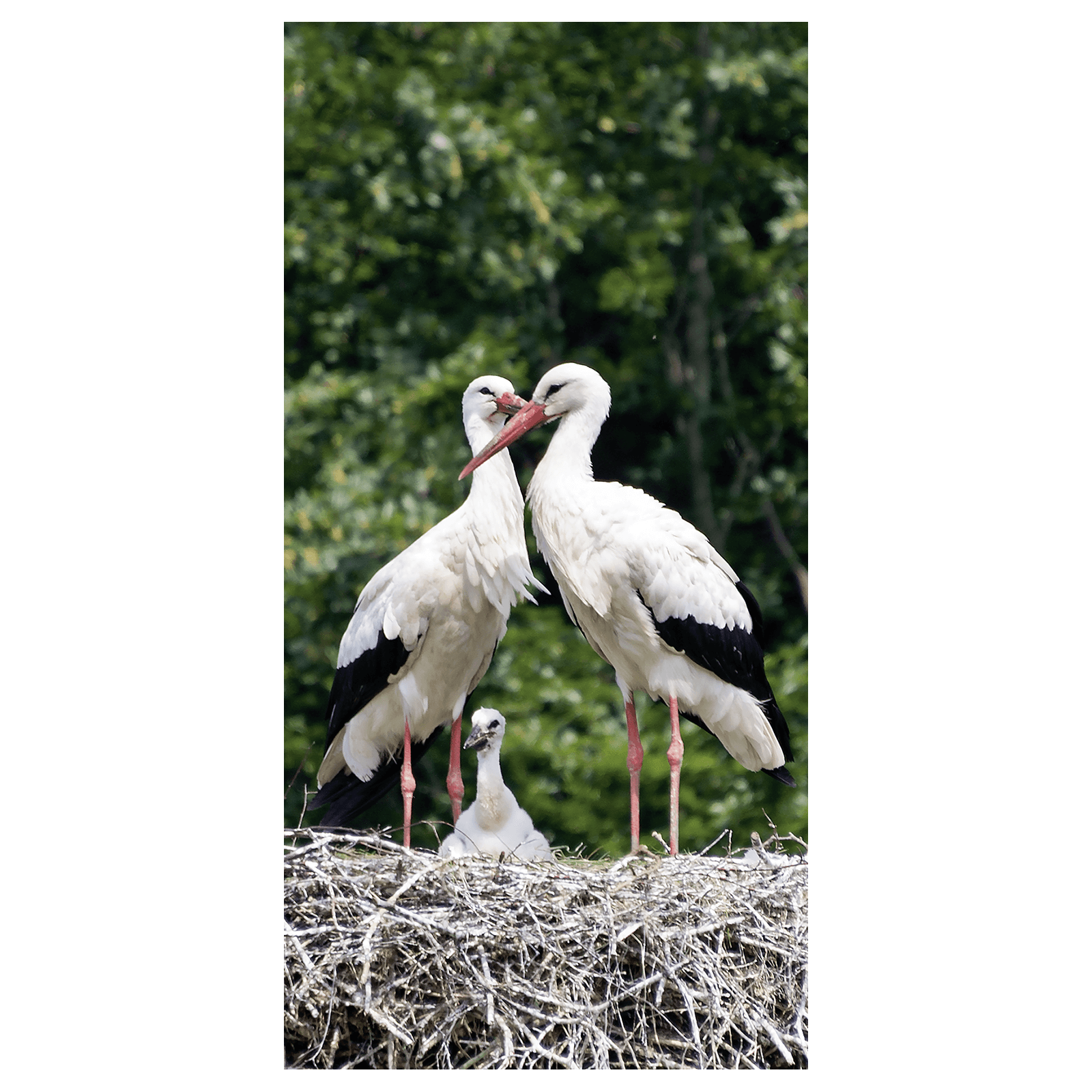 Schwer entflammbarer Stoffbanner Storchenfamilie 100 x 200 cm