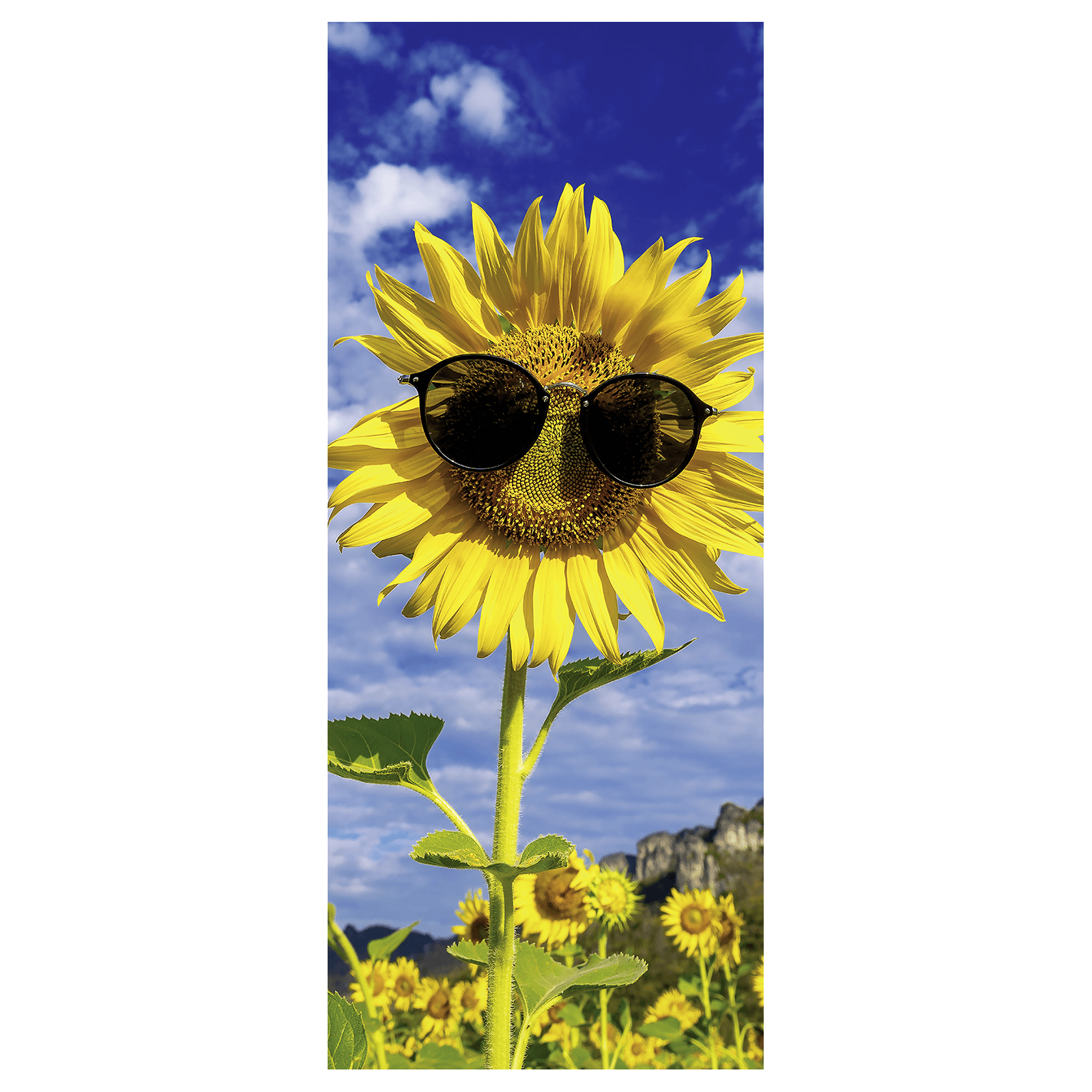 Diese fröhliche Sonnenblume mit Sonnenbrille und strahlendem Lächeln bringt Sonne in Ihr Ambiente – selbst an grauen Tagen. Das Stoffbanner zaubert eine positive Atmosphäre und verbreitet Sommerfeeling, wo immer es hängt. Ideal für Sommeraktionen, Veranstaltungen, Gartenpartys oder einfach als dekoratives Highlight. Probieren Sie es aus!